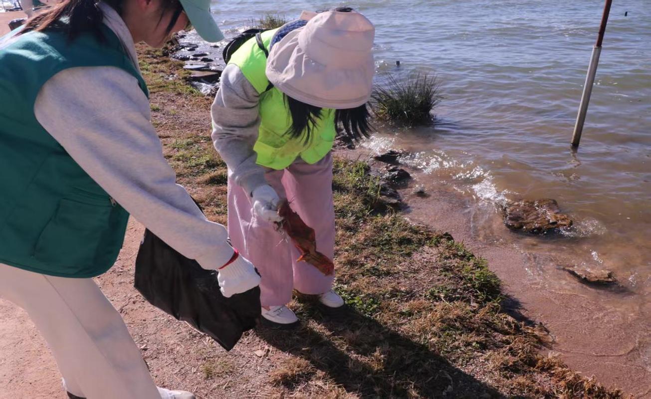宣讲环节结束后,随即开展滇池沿岸栖息地清理工作。全体人员分为若干小组,配备垃圾夹、分类垃圾袋等清洁工具,对沿岸观鸥区域、步道及周边草丛进行全面清理。志愿者重点清除塑料废弃物、食品包装等常见污染物,以及游客遗留的残余投喂物,同时收捡可能影响红嘴鸥栖息环境的各类杂物,有效改善沿岸生态环境。