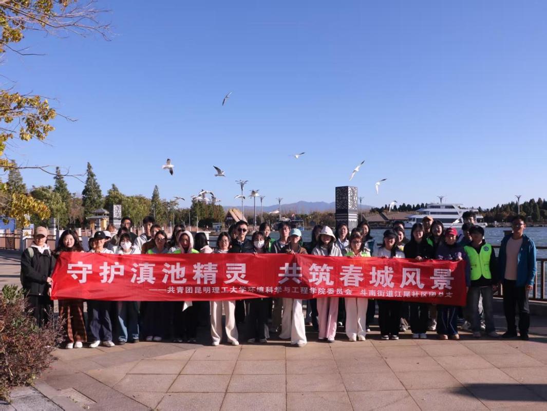 为深入学习贯彻党的二十届四中全会精神,自觉践行习近平生态文明思想,积极传递人鸥和谐共生的生态理念,昆明理工大学环境科学与工程学院团委与斗南街道江尾社区团总支于2025年12月4日在滇池沿岸区域联合组织开展“守护滇池精灵,共筑春城风景”文明观鸥暨护鸥活动。环境学院团委书记陈明义、兼职辅导员蔡含静,学院各团支部团员代表与社区环保志愿者共计60余人参与本次活动。