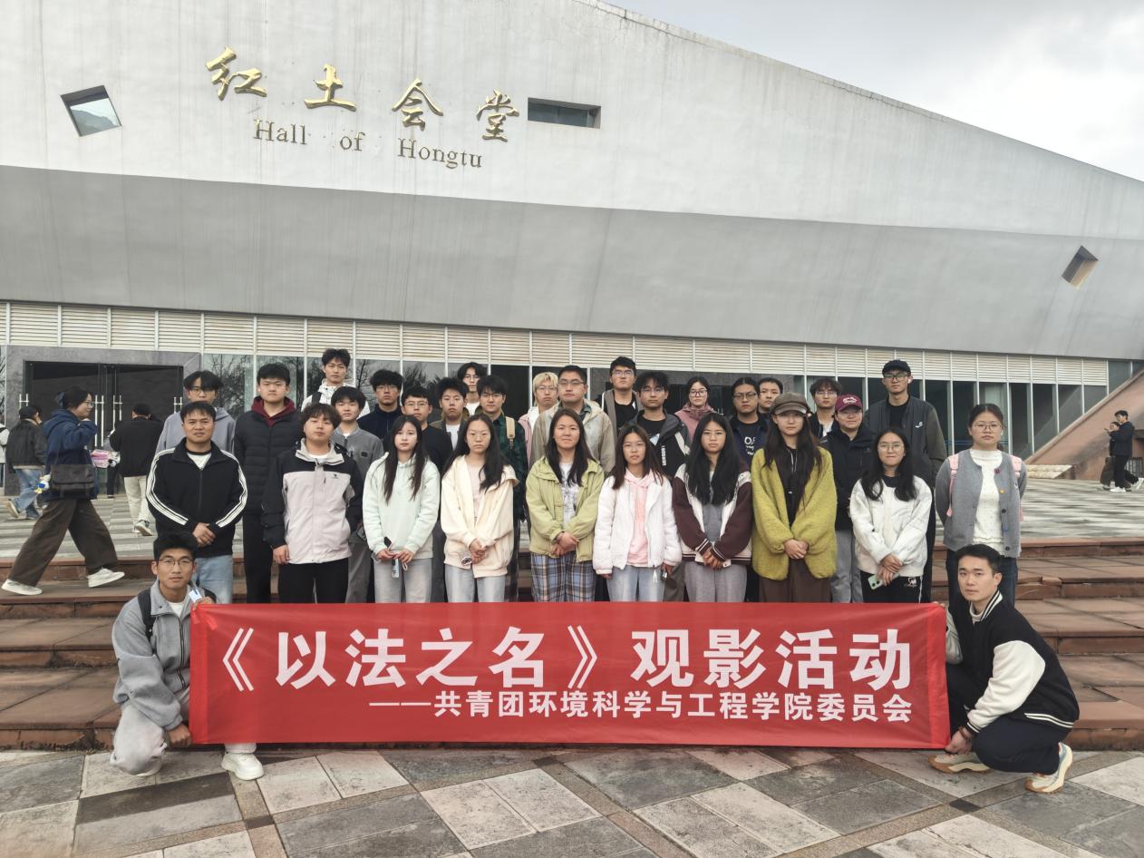 为深入学习贯彻习近平法治思想,大力弘扬法治精神,彰显法治力量,落实省普法办工作部署,昆明理工大学环境科学与工程学院组织广大团干部于2026年3月12日前往红土会堂,观看由司法部策划、多单位联合出品的法治题材电影《以法之名》,以影视化形式开展法治教育学习活动。