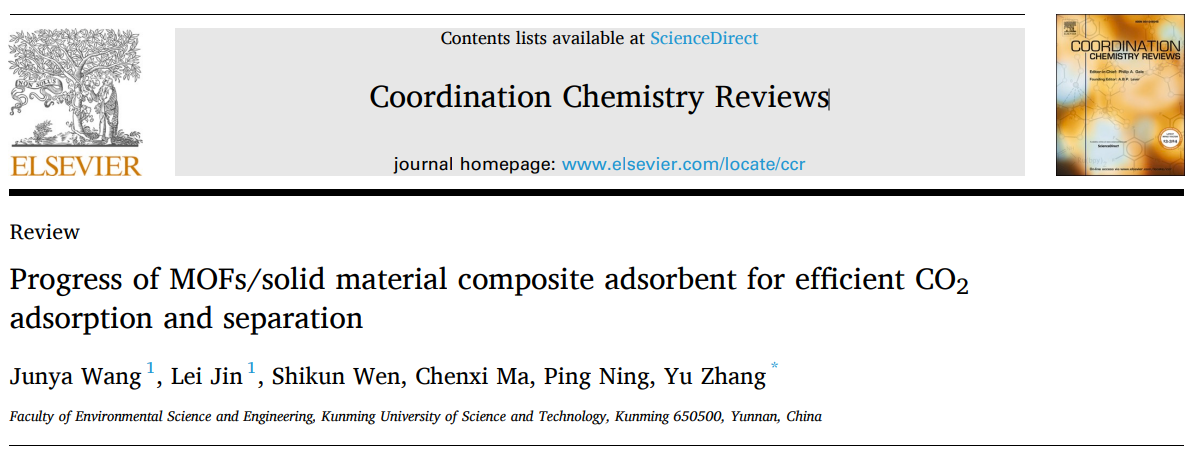 昆明理工大学环境科学与工程学院宁平教授、王君雅教授团队在MOFs复合吸附剂用于高效CO2吸附分离领域取得重要进展,相关成果以“Progress of MOFs/solid material composite adsorbent for efficient CO2 adsorption and separation”为题,发表在材料科学领域期刊《Coordination Chemistry Reviews》上,IF=23.5。